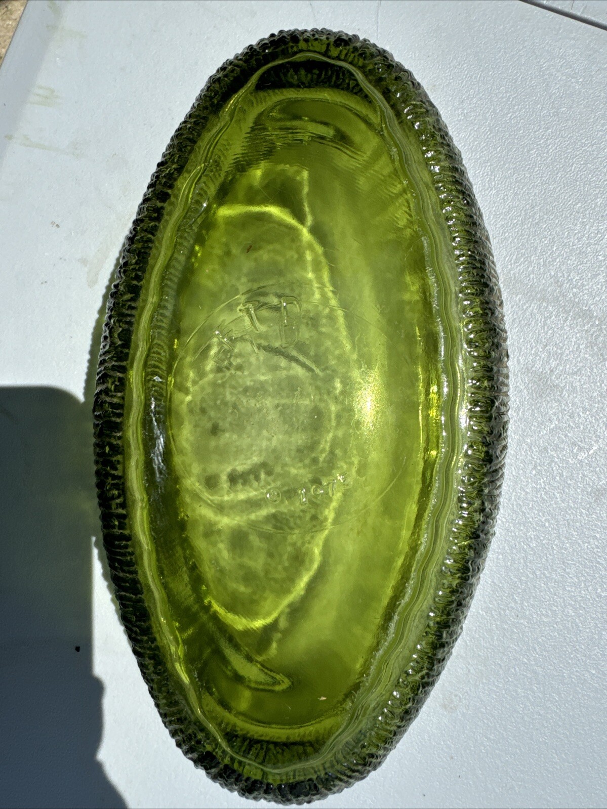 Add a touch of vintage charm to your dining table with this beautiful oval dish from FTD. Made of pressed glass in a stunning green color, this bowl features a wood-grain look that is sure to impress your guests. The ribbed design adds texture and depth, making it a perfect addition to your collection of decorative cookware. Crafted in North America in 1975, this mid-century modern style bowl is an excellent choice for serving candy, salad, or any other dish. The oval shape adds a unique touch to your dinnerware collection, while the art glass production style enhances its overall appeal. Don't miss out on the opportunity to own this vintage FTD bowl that is sure to bring a touch of elegance to your table.