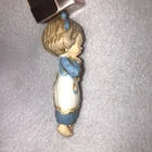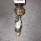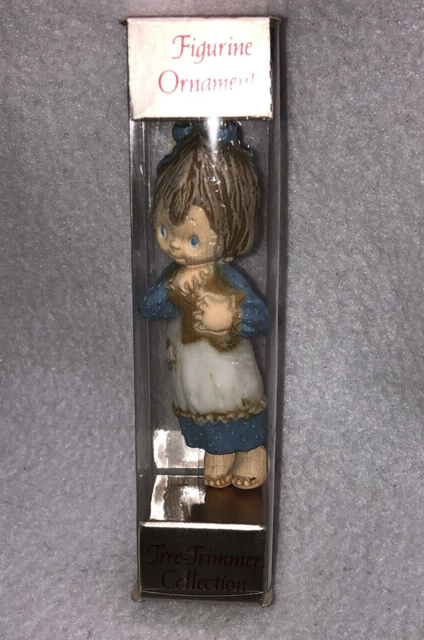 This is a sweet hand painted holiday ornament from Hallmark Cards, Inc. This ornament is part of their Tree Trimmer Collection and features an innocent looking Betsey Clark blue eyed child holding a star. She has a blue bow in her hair and is wearing a blue and white dress. The ornament measures approximately 3 1/2 inches tall and is about 1 inch long/wide. Ornament is in good vintage pre-owned condition. Comes as shown with it's original packaging/box. Packaging shows signs of wear and age. Please review and enlarge all photos for additional details, views and measurements. Shipped via USPS Ground Advantage.