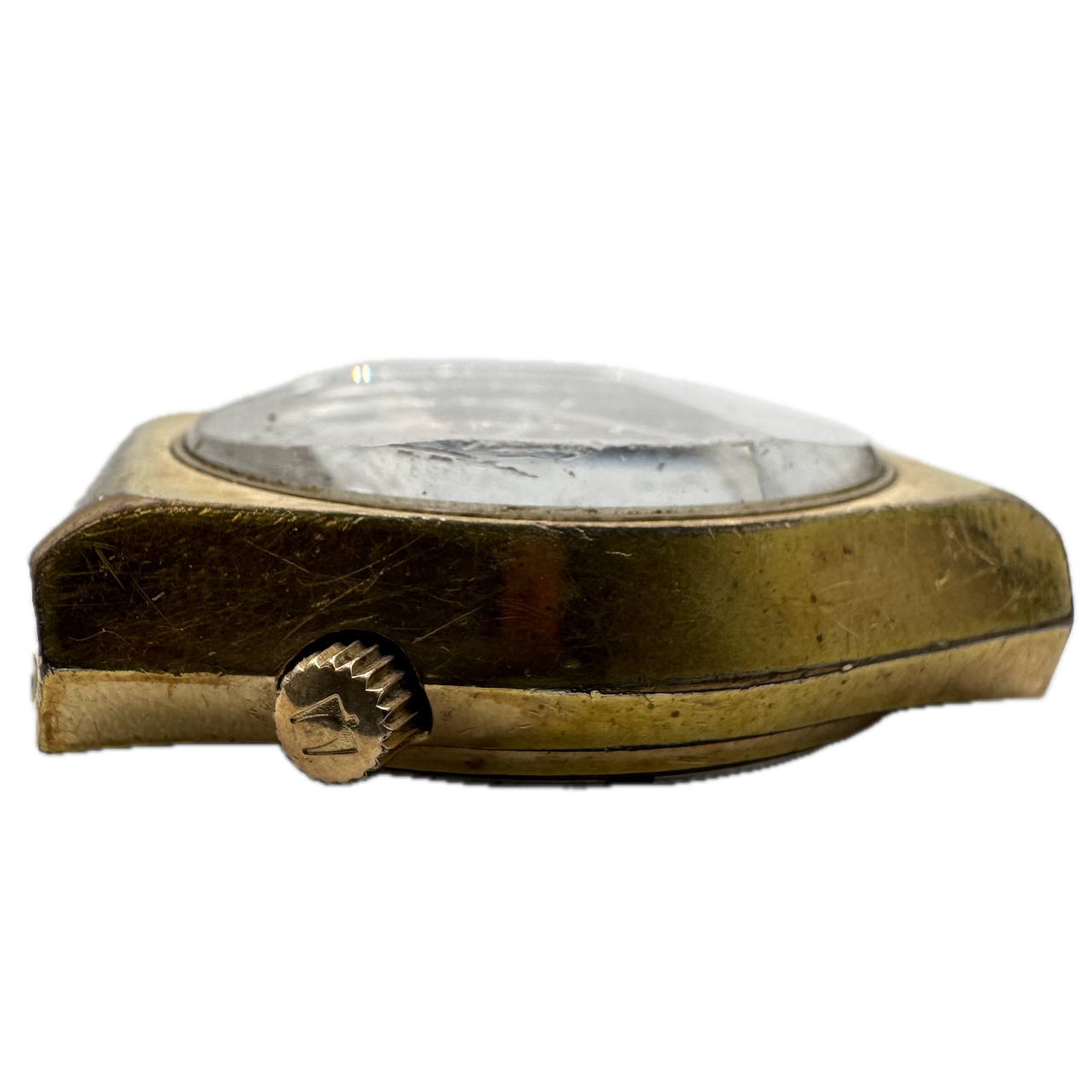 Vintage 1976 Bulova Faceted Orange Day Date Men's Tuning Fork Wristwatch 224 2 Product Description Item: Wristwatch Brand: Bulova Model: Accuquartz Movement: Tuning Fork Case Material: Gold Tone Production Year: 1976 Country: USA Gender: Men's Caliber: 224 2 Size: 34mm Product Measurements Diameter: 34mm Lug Width: 17mm Lug to Lug: 41mm Thickness: 12 mm Product Condition Overall Condition: Poor, overall condition for its age. Functions: Not running, has been tested and is not running. Case: There are scratches on the case. Crystal: There are scratches on the crystal. Dial: The dial has scratches on it. Additional Information: Day date works well. About the brand: One of America’s foremost manufacturers, Bulova was founded in the late 19th century by Joseph Bulova in Queens, NY. The brand quickly established itself as a maker of high quality watches, and became fully ingrained in American culture - even producing the first ever television commercial. Known for models like their Devil Diver, Sea King, and the later Accutron models, Bulova is something of the un-sung hero of American watchmaking, and a treasure trove for a vintage collector.