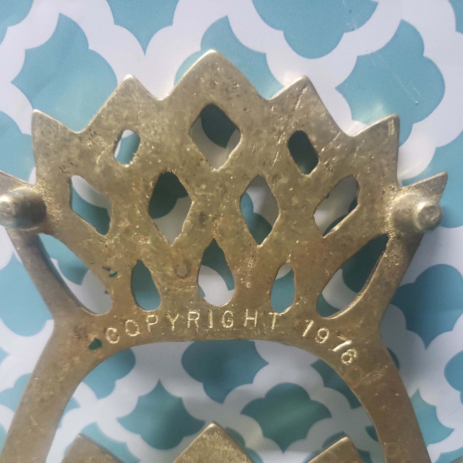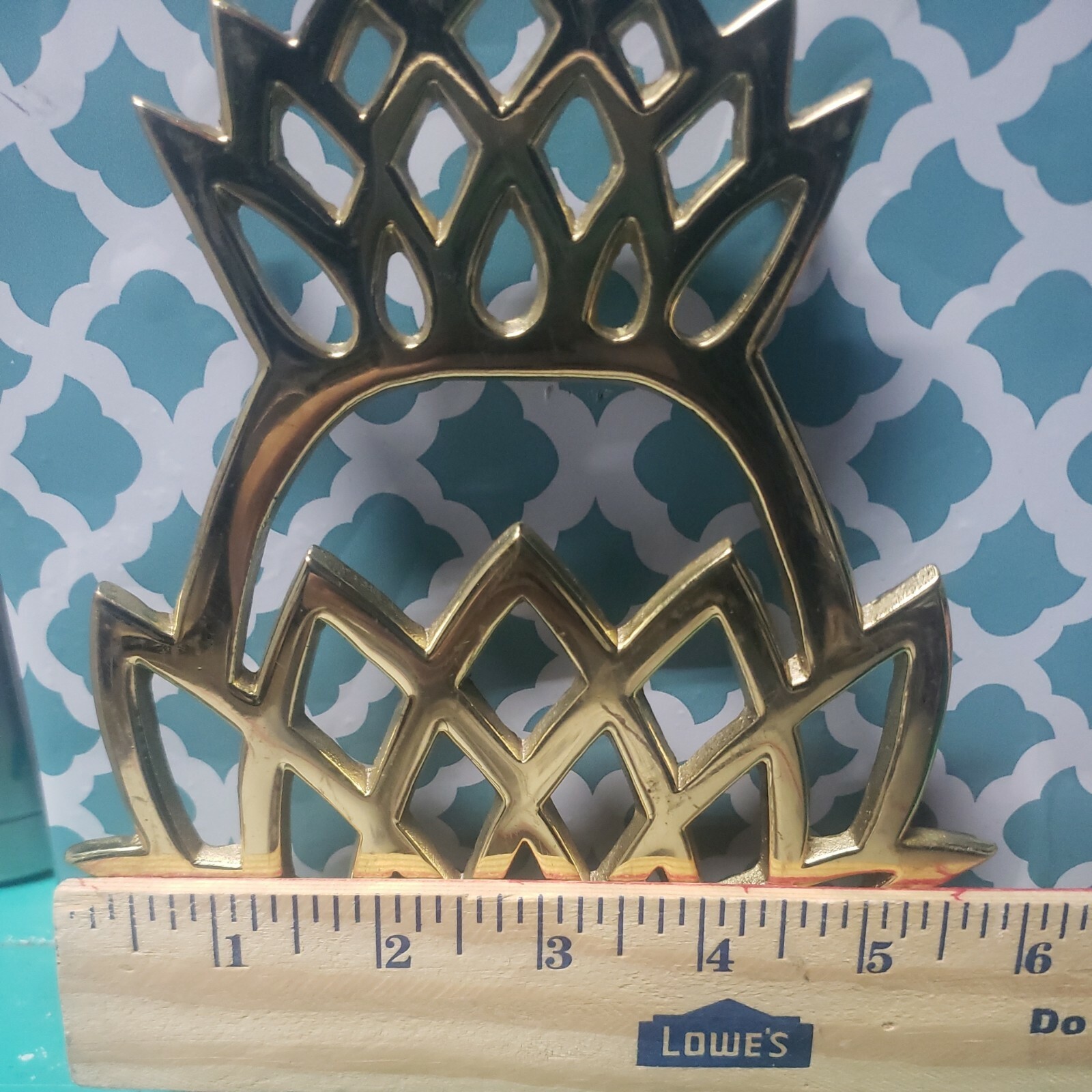 Vintage Solid Brass Pineapple Trivet Mark Vm 10-46 Copyright 1976 Hot Pot Stand. Condition is "Used". Shipped with USPS Priority Mail.