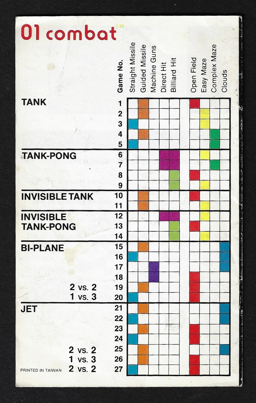Vintage 1977 Atari Game Cartridge and Instruction Manual Combat - CX2601 This is a pre-owned game cartridge and instruction manual from my personal collection in very good clean condition. The pictures are photos of the actual cartridge and instructions you will receive. Condition: Both the cartridge and the instructions are in very good clean condition. Minimal wear from use and storage. Please see photos. Publisher: Atari Game Name: Combat Weight: Appx 5 oz with packaging Please see photos and email me if you have any questions. Powered by SixBit's eCommerce Solution