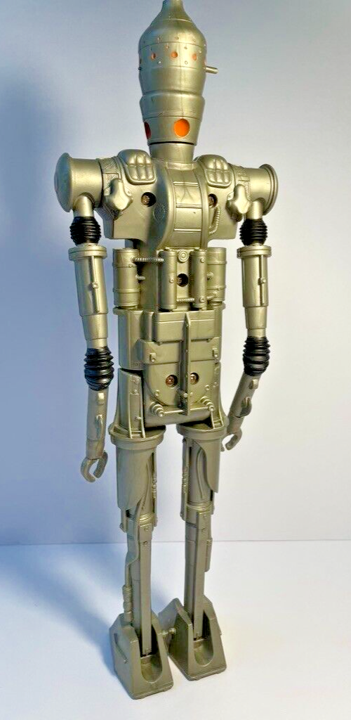 The product is a vintage Kenner action figure from the Star Wars Empire Strikes Back collection, specifically featuring the character IG-88. Manufactured in 1980 in Hong Kong, this multicolored figure stands at a height of 15 inches and has a width of 5 inches. With a theme based on movies and a franchise tie to Star Wars, this collectible piece is a nod to the popular sci-fi series and a sought-after item for fans of vintage action figures.