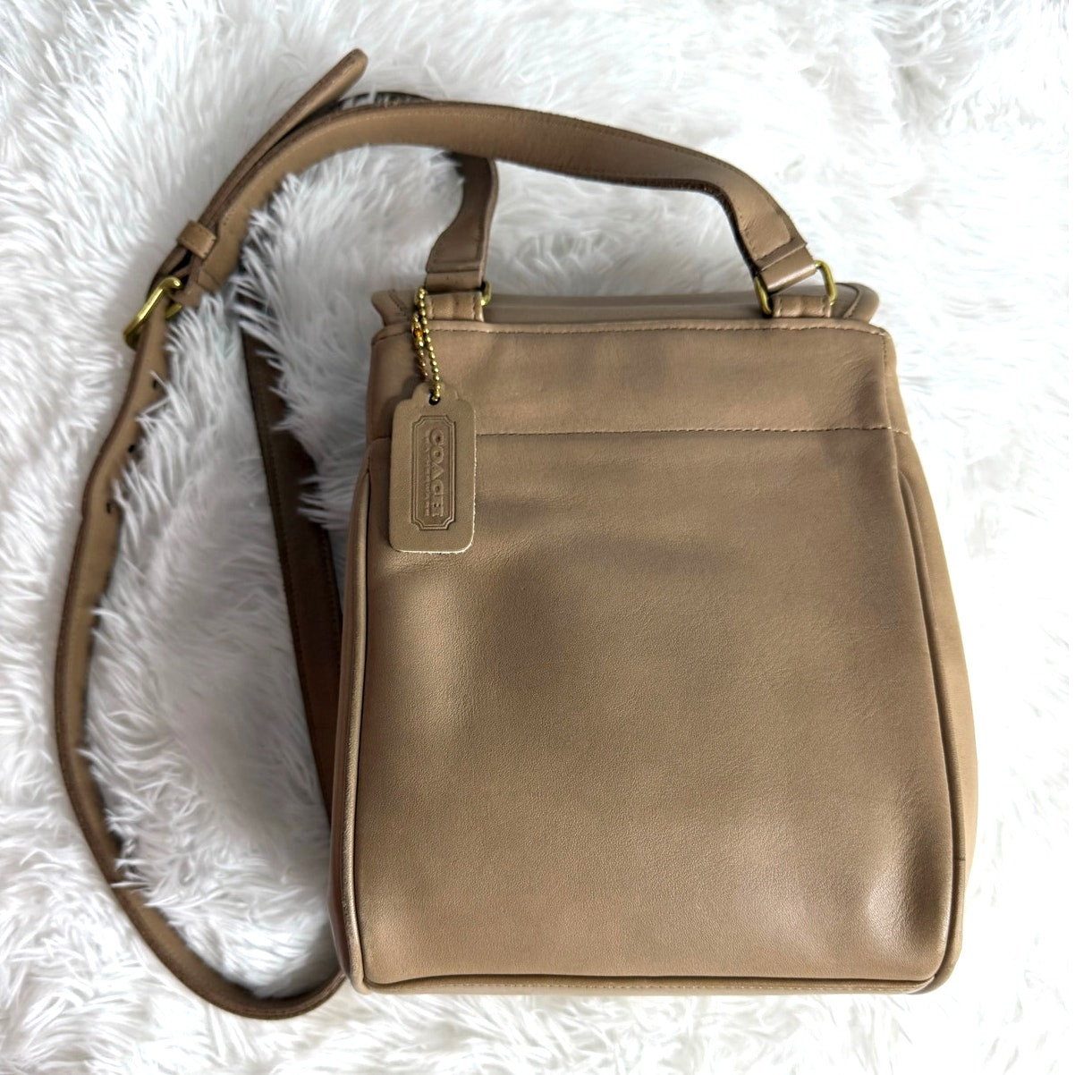 Vintage Coach Taupe 4029 Flap Drawstring 1980s Crossbody Shoulder Bag Hangtag included CPR leather only taupe 8" x 6.5" x 3" Preloved in great condition for age. Please see all pictures. All wear can be seen in pictures. The interior is clean. The exterior bottom has wear on the corner. This is a pre-owned, ready to be used. Sold as is