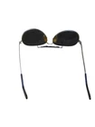 Vintage Eagle Eyes Aviator Sunglasses feature a solid gold metal frame with black glass lenses. These classic sunglasses are designed for unisex adults and have a vintage style. They are water-resistant and made in Korea. Perfect for those who appreciate a timeless aviator design with a touch of nostalgia.