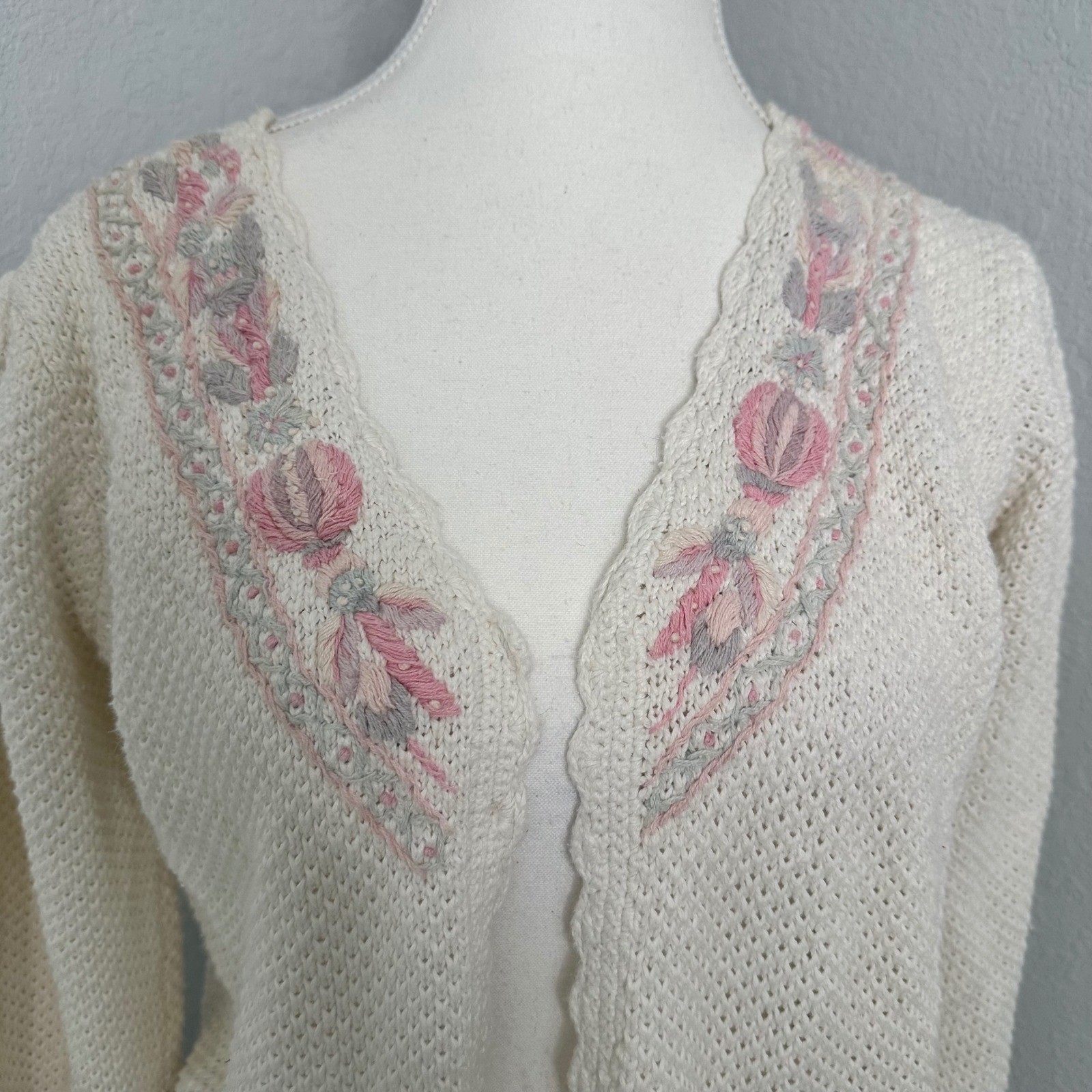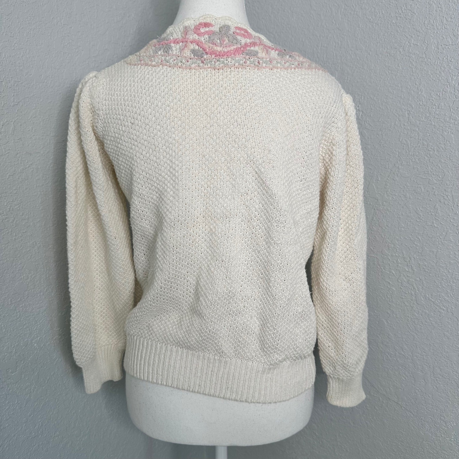 Vintage 1980s Margules Cardigan Grandmacore Cottagecore Farmcore Sweater Cream Pink Floral Knit Large Measurements: • Sleeve Length: 19 inches • Pit to pit: 19 inches • Length: 22 inches Style: Cardigan Color: Ivory Department: Women Type: Sweater Material: Ramie, Cotton Blend, Cotton Sleeve Length: Long Sleeve Neckline: V-Neck Features: Embroidered, Knit, Lightweight, Open Front Pattern: Floral Fabric Type: Knit Accents: Embroidered #vintage #grandmacore #knit #chukyknit #cottagecore