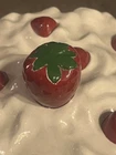 Great overall condition considering age. Few spots on strawberries that show some wear, a small Knick in the side, and crazing lines. All of these things are pictured. Measures: 10.5” H x 10.5” W Please view all pictures for overall condition!
