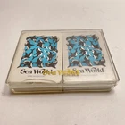 One is a complete 52 card deck plus 2 jokers. The second deck is still sealed. Top of clear case has a crack as pictured. Photos show the actual items you will receive.