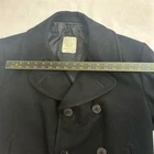 This US Navy men's pea coat is a vintage piece crafted from wool, featuring a solid blue color and a classic fit. It is mid-length with a point collar and double-breasted design, accented by nautical buttons and an arm patch. Suitable for fall, this coat embodies a military and nautical theme, making it ideal for casual outings or themed events. Made in the United States, it is a size 40 regular with a chest size of 40. The coat is pre-owned. Keywords: US Navy, pea coat, wool, vintage, men's coat, blue, nautical, military, fall fashion, double-breasted, classic fit, mid-length, button accents, pre-owned, United States. Brand: US Navy Type: Coat Size: 40 Style: Pea Coat Outer shell material: Wool Department: Men Color: Blue Pattern: Solid Accents: Button Vintage Season: Fall Jacket/coat length: Mid-Length Fit: Classic Collar style: Point Chest size: 40 Features: Double-breasted, Nautical buttons, Arm patch Theme: Military, Nautical Country/region of manufacture: United States