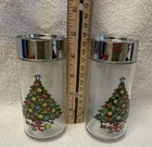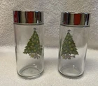 Christmas Salt & Pepper set by Carlton, Clear glass with Christmas Tree new - in original box (see black mark on box and shelf wear on box Vintage (1984) size: approximately 5 inch high clear glass with Christmas tree design made by Action Industries