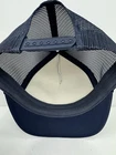 The "Roam Est 1985 Flat Bill Trucker Cap" is a men's adjustable trucker hat by Yupoong. Made of a blend of polyester and cotton, it features a structured, high-profile design with a flat bill and snapback closure. The hat is black with a classic American theme and has a mesh back for breathability.