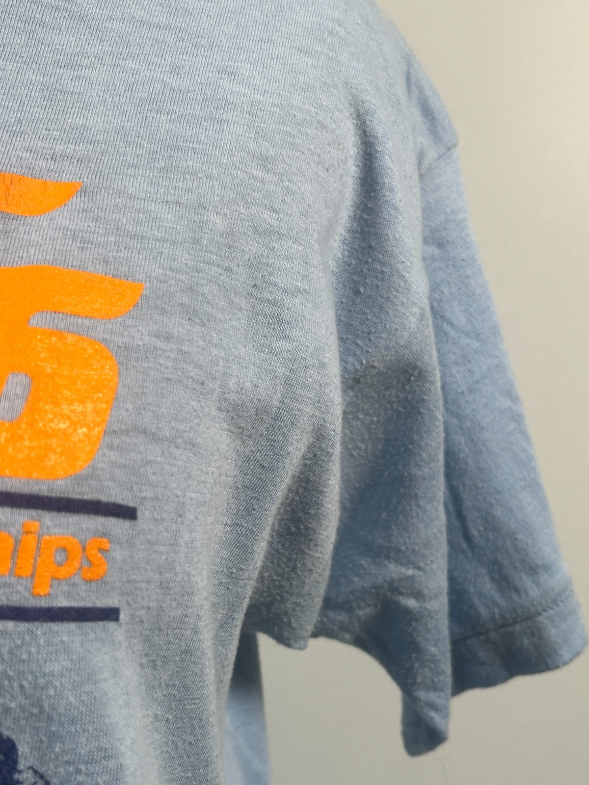 Vintage 1986 University of Tennessee Track and Field Men's T-shirt Size Large/retro clothing/vintage T-shirt/short sleeve blue T-shirt/HTF Vintage University of Tennessee 1986 Track and Field Championships T-shirt. This is a men's size large (42-44), short-sleeved light blue vintage shirt with orange and blue letters and a blue graphic of men running. It is thin and 50% cotton and 50% polyester. The tag says Healthknit Made in USA. Machine wash warm and tumble dry medium heat. I bought it as part of a bundle at a vintage store that was going out of business, so it still has the store tag on it. Smoke-free home. Measured laying flat- Shoulder to shoulder: 16'' Bust (armpit to armpit): 16.5'' Sleeve length: 6.75'' Overall length: 28.5'' Waist: 32''-33'' Hip/Hem: 17'' It is in excellent used condition with no stains, rips, tears, fabric snags, etc. It has some light wear to the material as it is thin. Please review all the photos for more details regarding the condition. Measurements are approximate. Item is cross-posted on Etsy. All orders are shipped the next business day Monday-Saturday (as much as possible, however there may be an occasional delay due to unforeseen circumstances). Ships from Florida. Please note-Regarding shipping, I use clean recycled packaging materials whenever possible. Your item may arrive in a reused Amazon box (or another vendor). Fragile items will often be double-boxed for additional protection. Clothing and/or fabric will be wrapped in plastic and packaged inside of a box. All sales are final and sold AS-IS. If your item arrives damaged or you have a different issue with your order, before leaving feedback, please contact me to see what options I may be able to offer you. Thank you!!