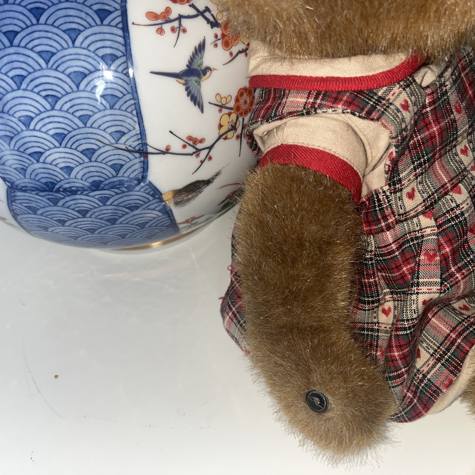 This product is a vintage stuffed animal from The Boys Collection, specifically from the 1986-2002 period. The plush bear is wearing a dress with a heart design, making it a perfect gift for Valentine's Day. It is small in size, measuring 6-14 inches, and is suitable for children aged 4-16 years old. The bear is brown in color and the product is categorized under Toys & Hobbies, Stuffed Animals, and Other Stuffed Animals.