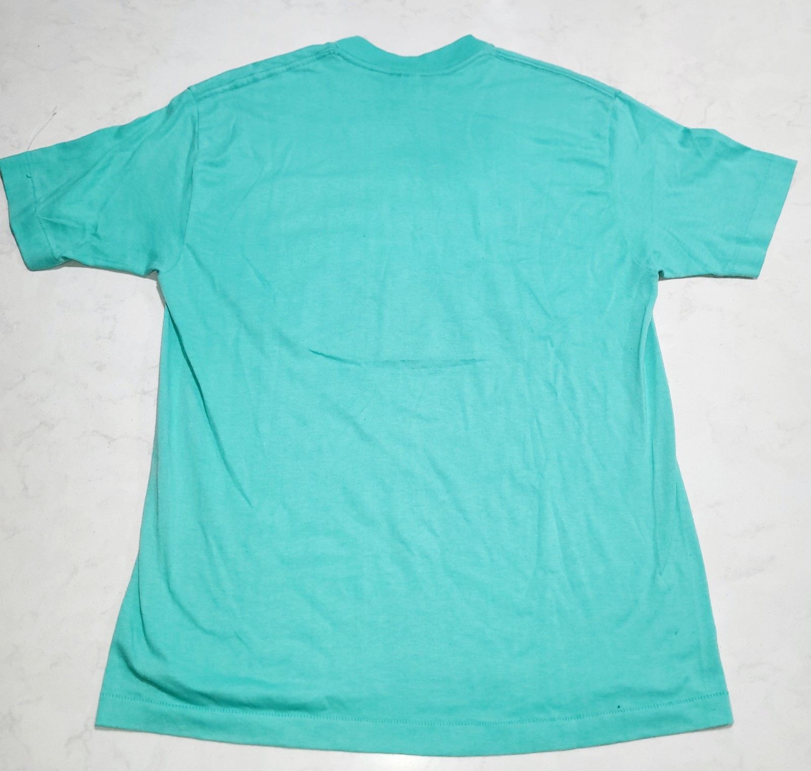 VINTAGE 1987. PRE OWNED. SIZE LARGE TAG BUT FITS LIKE A MEDIUM. PLEASE VIEW ALL PHOTOS ABOVE FOR MEASUREMENTS AND PROOF OF CONDITION. STORED IN A CLIMATE CONTROLLED SMOKE-FREE AND PET-FREE HOME. SHIPS SAME DAY AND SECURELY. Embrace a touch of nostalgic flair with this vintage 1987 Bugs Bunny T-Shirt, a classic addition to any wardrobe. Bearing the iconic Looney Tunes character, this green, short-sleeved tee features a robust graphic print that captures the essence of the beloved cartoon era. Made in the USA, this shirt proudly showcases a era-specific design that will take you back to the golden days of the 80s. Crafted from pure cotton, the knit fabric ensures breathability and comfort, making it an excellent choice for any season. This crew neck T-shirt comes in a regular fit, size large, and is machine washable for easy care. Adorned with a single-stitched detailing and the distinctive Warner Bros. brand tag, it's a lightweight, limited-edition piece that embodies the spirit of streetwear and the fun of the 80s and 90s.