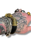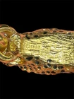 The Vintage 1987 Franklin Mint Duchess Of Windsor 22k Gold Plated Panther Bracelet is a stunning piece of jewelry that exudes elegance and sophistication. Made with 22k gold plating and featuring a bold panther design, this bangle bracelet is a true statement accessory. The use of ebony, 22k Gold Plated Metal, and Red stone materials adds a touch of luxury to the overall design, making it a prized piece for any collector or fashion enthusiast. The yellow gold plating gives it a classic and timeless appeal, perfect for adding a touch of glamour to any outfit. ———————————————————————————— About KashVault® Jewelry & Antiquities Curated by Keni Kash | Est. 2007 I’m Keni Kash—collector, metalsmith, Jewelry Designer and founder of KashVault® Jewelry & Antiquities. With 6,000+ lots sold, 6,000+ followers on Whatnot, and 1,000+ flawless reviews, I specialize in rare vintage & antique jewelry, historic lighting, cast iron, pottery, export china, and much more. I have a certain aesthetic and rare discerning eye that is takes my business and collections to another level. Every piece is handpicked and researched by me. I studied fine arts, metalsmithing, and history, and built this business through real-world experience—working with dealers and collectors nationwide. My vault holds 25,000+ curated pieces and counting. Shop with KashVault©️ to Level Up! Buy with confidence. This is what I live for. — Keni Kash | KashVault® Jewelry & Antiquities