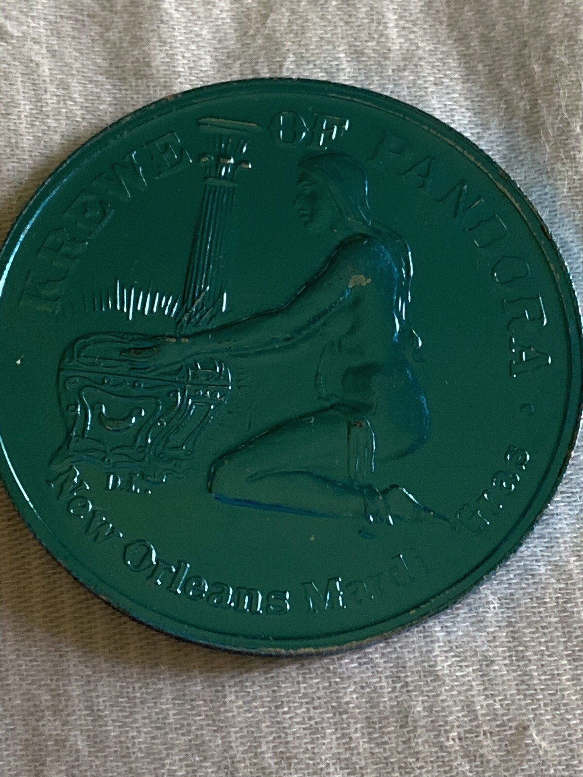 Vintage 1987 Pandora fantastic flickers Mardi Gras Coin Token Medallion 1-1/2". Condition is Used. Shipped with USPS First Class.