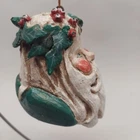 Vintage 1988 House of Hatten Forest Santa Head Ornament with Holly + Berries - As shown - Estate Fresh Please message us with any questions - Measurements: 4" x 2.5" Carved wood. Great used condition. See photos for best description and condition.