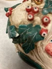 Vintage 1988 House of Hatten Santa Head Ornament. Good condition. 3 1/2 inches tall, 3 inches deep and 2 3/4 inches wide. Has one spot on leaves missing paint shown in last picture.