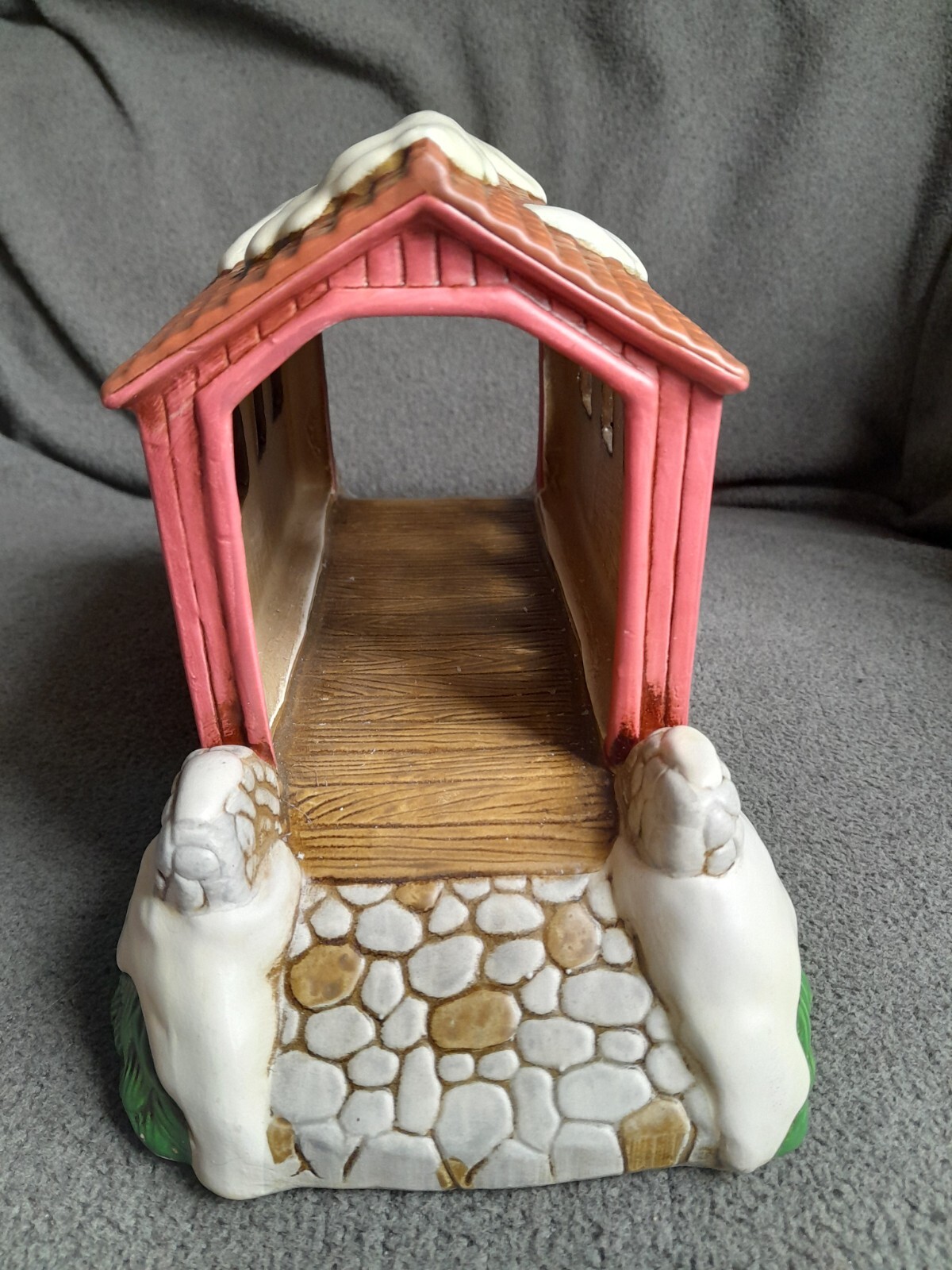 This rare vintage Lefton Colonial Village Sweetheart's Covered Bridge is a must-have for any collector. The bridge is beautifully hand-painted with a multicolor finish and features a colonial style that adds a touch of elegance to any room. It was manufactured in 1988 and is made of high-quality porcelain material. The bridge measures 10 inches in length and 6.5 inches in height, making it a large and impressive piece. It is part of the Colonial Village collection and is an original, not a reproduction. The bridge comes from China and is perfect for any occasion, especially Christmas. The Sweetheart's Covered Bridge will make a great addition to your Christmas Village collection.