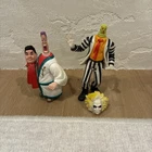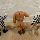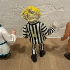 For all the fans of the beloved 1988 movie Beetlejuice, here's a rare lot of 5 action figures from the animated series of the same name. These vintage figures, manufactured in 1989 by Geffen Movie Co., feature the iconic characters including Michael Keaton as the titular character, Otho with a detachable head, and more. These original figures are perfect for collectors and enthusiasts of the franchise, and are sure to make a great addition to any collection. The lot is in great shape and will be shipped with care. Don't miss out on this opportunity to own a piece of Beetlejuice history! See photos. Sold as is. Mechanisms work but are loose because of the age. 2 characters come with their heads, no accessories included.