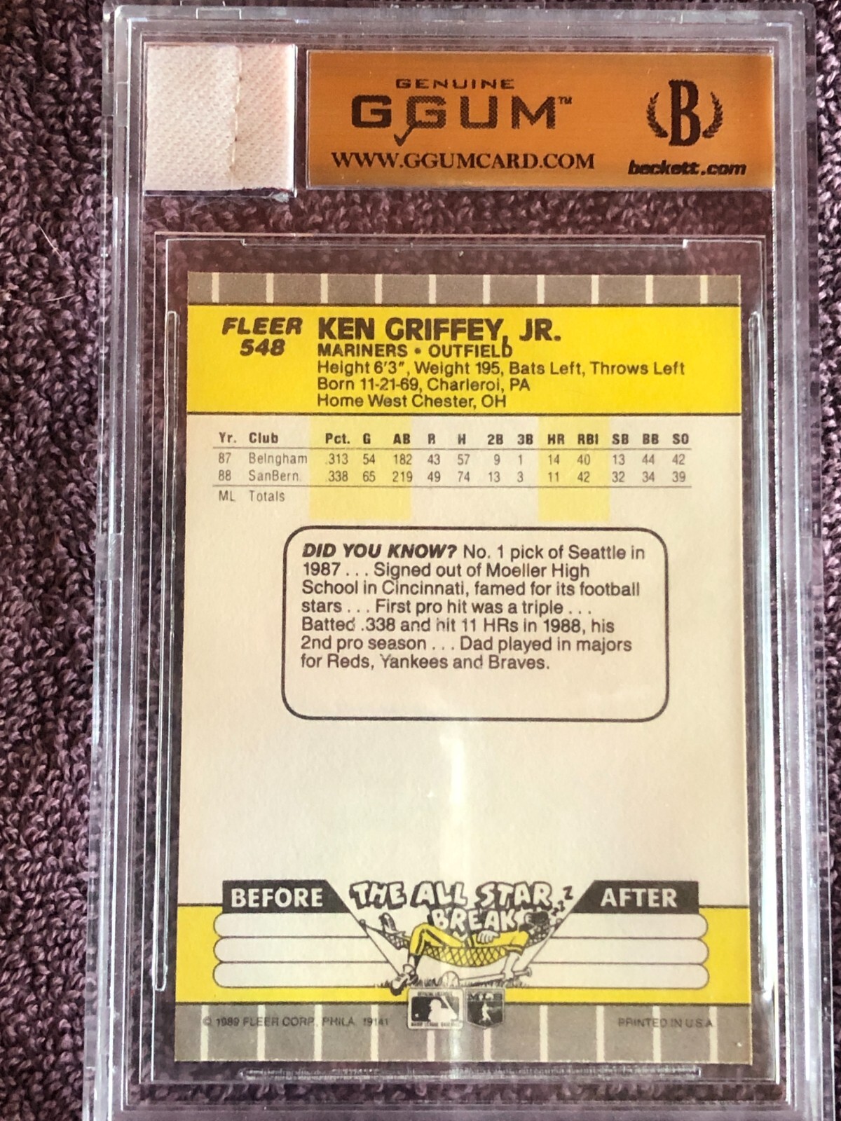 KEN GRIFFEY JR 1989 FLEER BGS 9.5 GEM MINT ROOKIE WITH 1989 GAME USED PATCH SHIPPING $15 FULLY INSURED AND TRACKED