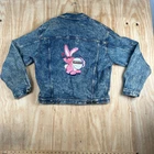 This vintage Energizer Battery Bunny collared denim jacket is a must-have for any fashion-savvy man. The jacket features a solid blue color with an acid wash that gives it a unique and edgy look. It comes in size L and is made of 100% cotton, making it comfortable and machine washable. The jacket has a button closure and is perfect for travel, casual wear, or workwear. It also has embroidered accents and the Energizer Bunny logo, adding to its vintage charm. This jacket is a great addition to any wardrobe and is suitable for winter, fall, and spring. Whether you're riding, walking, or hiking, this jacket will keep you warm and stylish. SKU: PK-36-84
