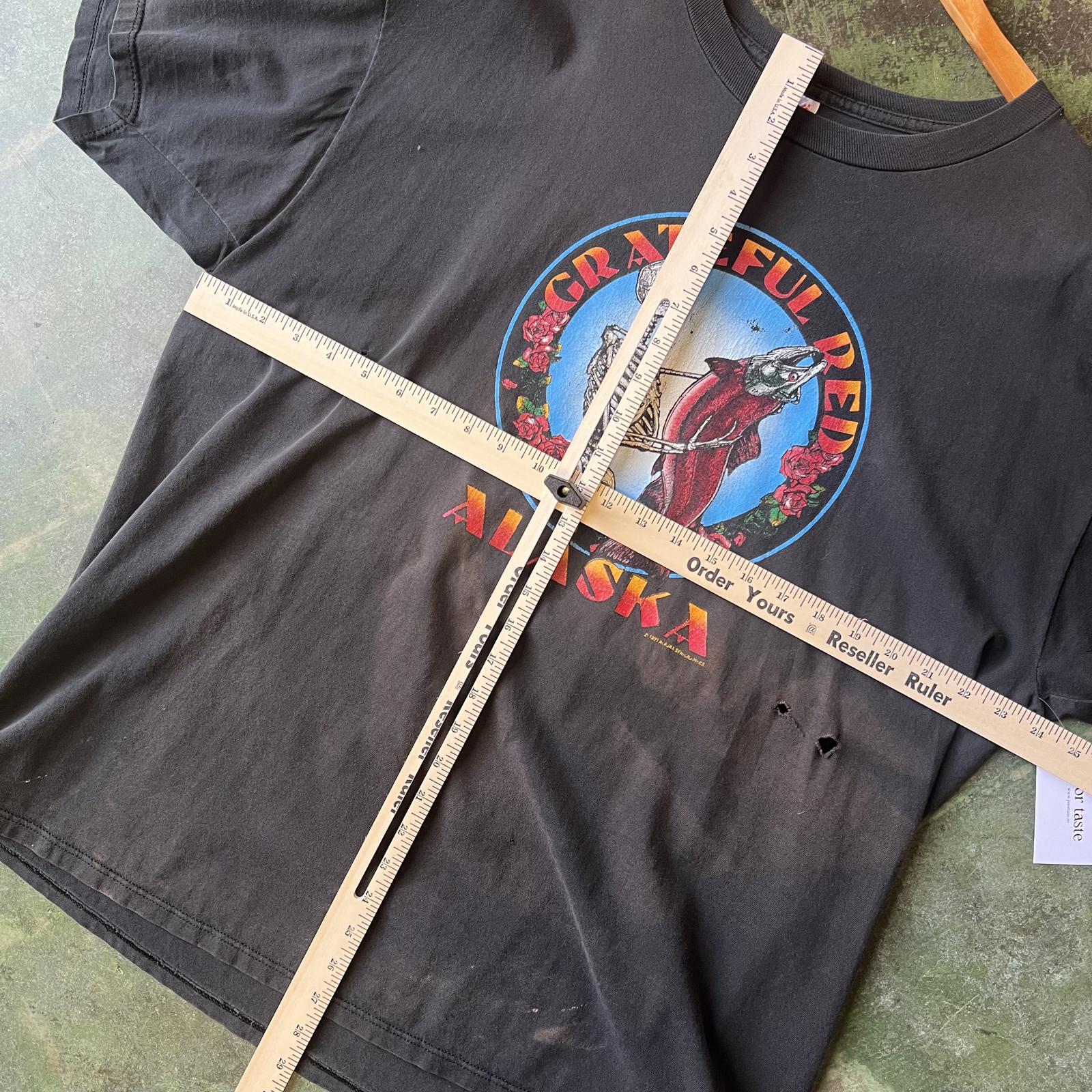 Vintage 1990s Grateful Dead Alaska T Shirt XXL "Grateful Red" Sun Faded and Distressed Made in USA - Jerzees Measurements shown in photos