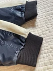 See photos for condition and actual measurements. The jacket is in good condition- the only major ware/tear are the snap buttons which are chipped.