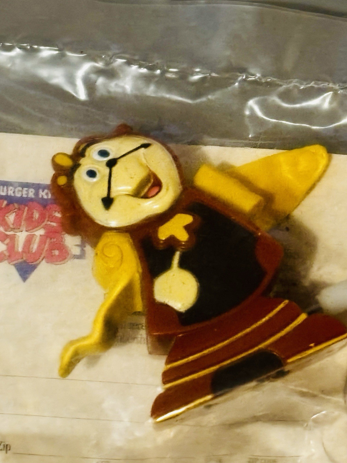 5 New Toys for sale. Each toy 15.00. The product is a vintage 1991 Beauty & The Beast toy collectable from Burger King. This item has never been opened and is considered a new collectible for fans of the classic animated film. With its nostalgic appeal and connection to the beloved story, this toy would make a special addition to any collection, especially for those 17 years and up who appreciate the magic of Beauty & The Beast. 15.00 each