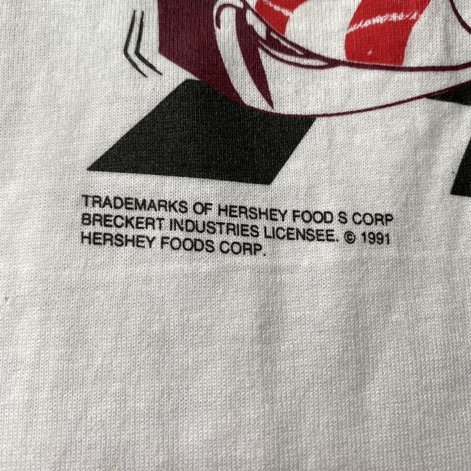 Beautiful shirt all around. Send me your offers 🙏🏼 This Vintage 1991 Hershey's Chocolate Syrup T-Shirt is a must-have for any 90s enthusiast. Made from a comfortable cotton blend material, this men's XL shirt features a solid white color with a logo accent. With a classic crew neck and short sleeves, this single-stitch tee is perfect for all seasons and is a nostalgic throwback to a bygone era. Made in the United States by the brand Fruit of the Loom, this regular-fit T-shirt is a timeless addition to any wardrobe.