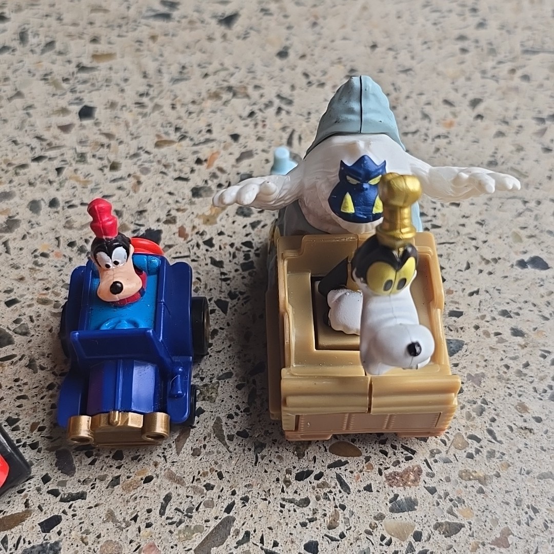 Relive the magic of childhood with this delightful bundle of 1991-1995 McDonald's Happy Meal Toys featuring the lovable Disney character, Goofy. A total of four toys are included. These collectible toys are a throwback to the era of classic fast-food promotions and are a must-have for enthusiasts of promotional toys and Disney collectors alike. Each piece showcases the carefree spirit of Goofy and the enduring legacy of the McDonald's Happy Meal Toys series. Add this nostalgic set to your collection and enjoy a piece of playground history.