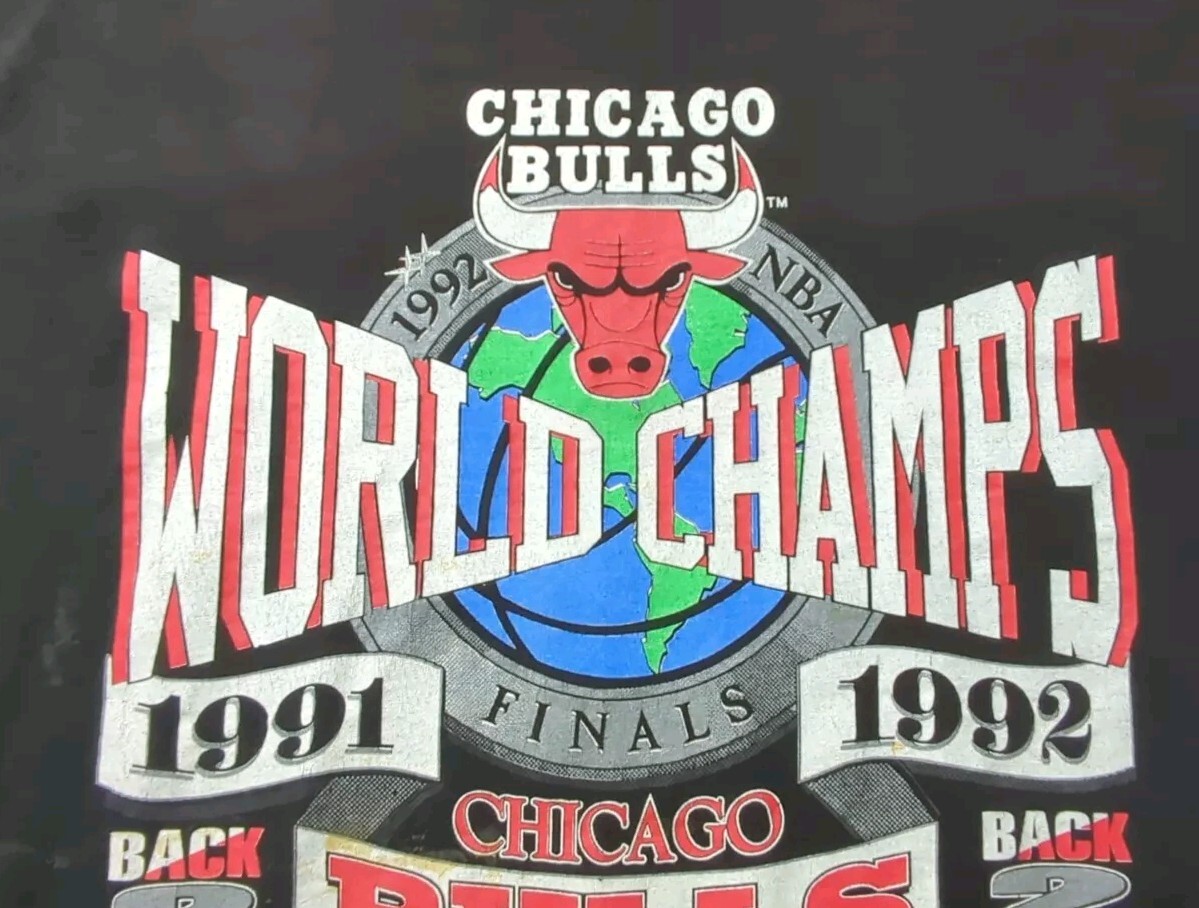 Vintage 1993 Chicago Bulls 3-Peat Championship Distressed Shirt Size Large Jordan Era