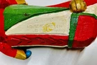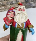 Vintage 1992 House of Hatten 15” Anamorphic Santa Claus In Stocking Holding A Jester Christmas Wall Figure. Signed on back. Good condition with with no chips or breaks. There is some light wear to the paint. Item measures 15" in length and 6 3/4" in width. A unique addition to your holiday collection! Thank you for your looking!