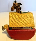 This vintage House of Hatten Christmas wooden ornament features a unique Noah's Ark design with a variety of animals. The colorful multicolor boat-shaped ornament is a great addition to any holiday collection. Made in 1994, this vintage piece adds a touch of nostalgia to your decor. It is ideal for collectors and admirers of unique ornaments and decor pieces. The features of this ornament include a beautiful vintage look, making it stand out among other ornaments.