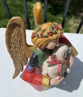 Celebrate the holiday season with this beautiful vintage 1994 House of Hatten Large Christmas angel figurine. Crafted from high-quality resin material, this handmade piece features a stunning angel design with a lamb at her side. Measuring 16 inches in height, it's the perfect addition to any Christmas decor. This original piece is signed and comes from the Philippines, making it a unique and special addition to any collection. Whether you're a collector or looking for a special holiday gift, this House of Hatten angel figurine is sure to bring joy and wonder to any setting.
