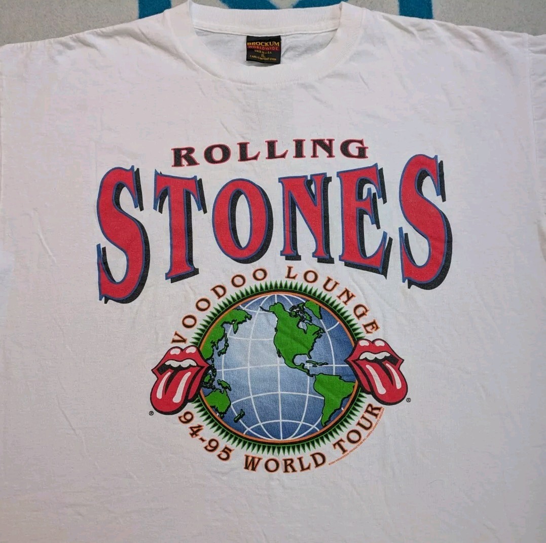 Vintage:YesModel:Vintage Rolling Stones ShirtFeatures:Double-Sided, Made In USA, Single Stitch, Tie DyeBrand:BrockumColor:WhiteSize:XLCharacter Family:Green Day, Tool, Tool Band, Steely Dan, Nirvana, Guns N' Roses, Ramones, The Ramones, The Grateful Dead, Grateful Dead, Rolling Stones, Voodoo LoungeCountry/Region of Manufacture:United StatesType:T-ShirtProduct Line:Rolling Stones Voodoo Lounge ShirtGraphic Print:YesGarment Care:Machine WashableCharacter:Green Day, Tool, Tool Band, Steely Dan, Nirvana, Guns N' Roses, Ramones, The Ramones, The Grateful Dead, Grateful Dead, Rolling Stones, Voodoo LoungeDepartment:MenSize Type:RegularTheme:Band, Grunge, Hip Hop, Music, Rock, Green Day, Basket Case, Concert Shirt, Tour Shirt, Band Shirt, Vintage Green Day, Rap, Nirvana, Butthole Surfers, Made in USA, Steely Dan, Kid Charlemagne, Guns N' Roses, The Ramones, Ramones, David Opie, The Grateful Dead, What A Long Strange Trip It's Been, Rolling Stones, Voodoo LoungePattern:Tie DyeMaterial:Cotton BlendSleeve Length:Short SleeveYear Manufactured:1990-1999Fit:RegularNeckline:Crew Neck