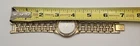 This stunning vintage Bulova watch exudes timeless elegance with its gold stainless steel design and sparkling diamond bezel. The classic linen dial with Roman numerals and date function adds sophistication, while the Swiss movement ensures reliable precision. Though modest in size by today's standards, its refined craftsmanship makes it a perfect statement piece for women or those who prefer a more delicate look. The water resistance and durable construction mean this beautiful watch can be enjoyed for years to come. A true vintage treasure!