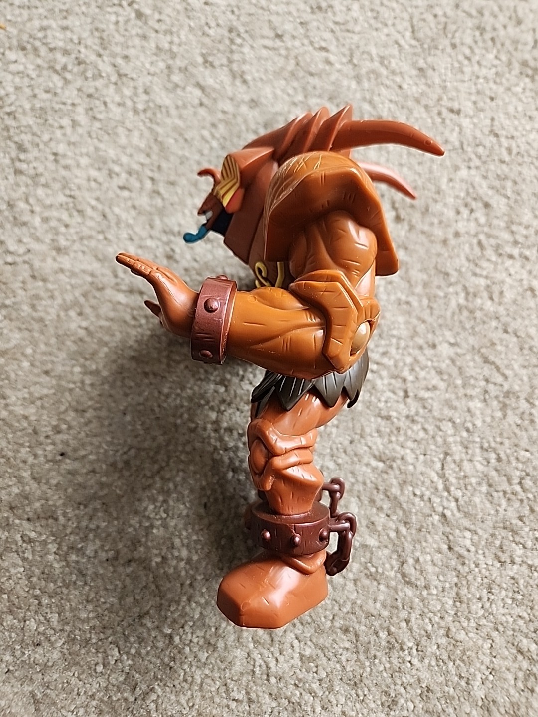 Unleash the nostalgia with the rarest of collectibles, the Yugioh 7" Exodia The Forbidden One Action Figure. A true vintage gem from 1996, this iconic toy is an essential for fans of the Yu-Gi-Oh! franchise. The vivid orange plastic figure stands tall at 7 inches, capturing the essence of the beloved character Exodia, as brought to life by the talented Kazuki Takahashi. As an original licensed reproduction, it's a standout piece that perfectly embodies the spirit of both TV shows and video games. It's not just an action figure; it's a piece of history, a memento from the days of classic anime and trading card games. Add this timeless treasure to your collection and own a slice of the Yu-Gi-Oh! legacy. Note: This listing is for the action figure only. I do not have any of the accessories that go with this. Sound and blaster are untested.