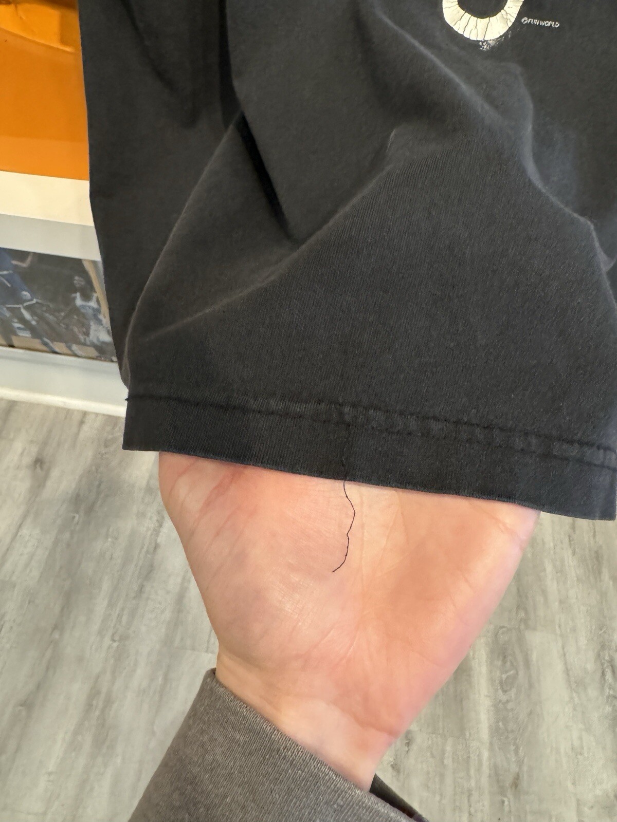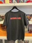 Few flaws pictured with a small spot below the face and cracking and a few marks on the front print. This XL vintage T-shirt features the iconic Ghostface mask from the 1996 horror movie "Scream". The black shirt is designed in a regular fit with short sleeves and is themed around 90s horror movies. Perfect for fans of the cult classic film, this t-shirt is a unique addition to any collection of movie memorabilia or horror-themed clothing.