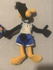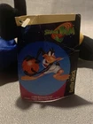 This lot of 3 Vintage Space Jam Plush Looney Tunes from 1996 includes Babs Bunny, Bugs Bunny, and Daffy Duck. These plush toys are part of the Space Jam franchise and were manufactured by Warner Bros. Made of plush material, these stuffed toys represent iconic characters from the movie Space Jam. This nostalgic collection is a must-have for fans of classic Looney Tunes characters and collectors of vintage toys. Also includes the junior novelization and pez dispenser.