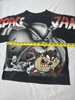 Slam dunk into the 90s with this rare Vintage 1996 Warner Bros. Space Jam Taz & Bugs Bunny Black Graphic T-Shirt! This Youth Large tee, an official Looney Tunes product, captures the iconic Space Jam basketball vibe with a bold Taz and Bugs Bunny front graphic (no basketball, unlike common designs) and a striking Space Jam logo on the back. Made from 100% cotton, it’s soft and perfect for collectors, 90s nostalgia fans, or casual wear. In good used condition (GUC) for its age, with slight fading and some graphic crackling that adds retro charm. Ideal for 90s-themed outfits or as a Looney Tunes keepsake. See photos for measurements. Ships fast and securely! Specifications: Condition : Good used condition (GUC), slightly faded, minor graphic crackling Size : Youth Large Material : 100% cotton Color : Black Graphic : Taz and Bugs Bunny on front (no basketball), Space Jam logo on back Tag : Official Looney Tunes Product Care : Machine washable, air dry recommended 3. Keywords Vintage Space Jam T-Shirt 1996 Space Jam Tee Taz and Bugs Bunny Looney Tunes Shirt Youth Large T-Shirt Vintage 90s T-Shirt Black Graphic Tee 100% Cotton Tee Retro Looney Tunes Official Looney Tunes Product 90s Nostalgia Vintage Cartoon Tee Space Jam Logo Shirt 90s Basketball Fashion 90s Fashion Collector 90s Cartoon Fan Looney Tunes Collector Retro Fashion Lover Nostalgia Enthusiast Vintage Streetwear Sustainable Fashion Shopper Cartoon Merch Collector 90s Pop Culture Vintage Wardrobe Builder Space Jam Movie Fan
