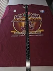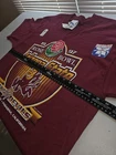 The Vintage NWT Arizona State 1997 Rose Bowl Large Mens Burgundy Graphic Logo Tee is a officially licensed shirt featuring the Arizona State Sun Devils football team. Made by Pro Player, this retro shirt celebrates the team's participation in the 1997 Rose Bowl. The shirt comes in a size L, with a red color scheme and a graphic logo representing the team. Perfect for male fans of the Arizona State Sun Devils looking to add a piece of sports memorabilia to their collection, this shirt is a unique and nostalgic item that showcases team pride and history.