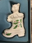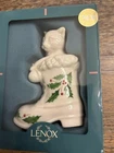 Collection: Ornaments Brand: Lenox Handmade: No Set Includes: Christmas Stocking Number of Items: 1 Material: Bone China Department: Adult Theme: Holiday Features: Vintage Color: Cream Shape: Cat Year Manufactured: 1997 Occasion: Christmas Subject: Christmas Type: Ornament Antique: No Vintage: Yes Item Height: 5 in Age Level: Over 18 Years