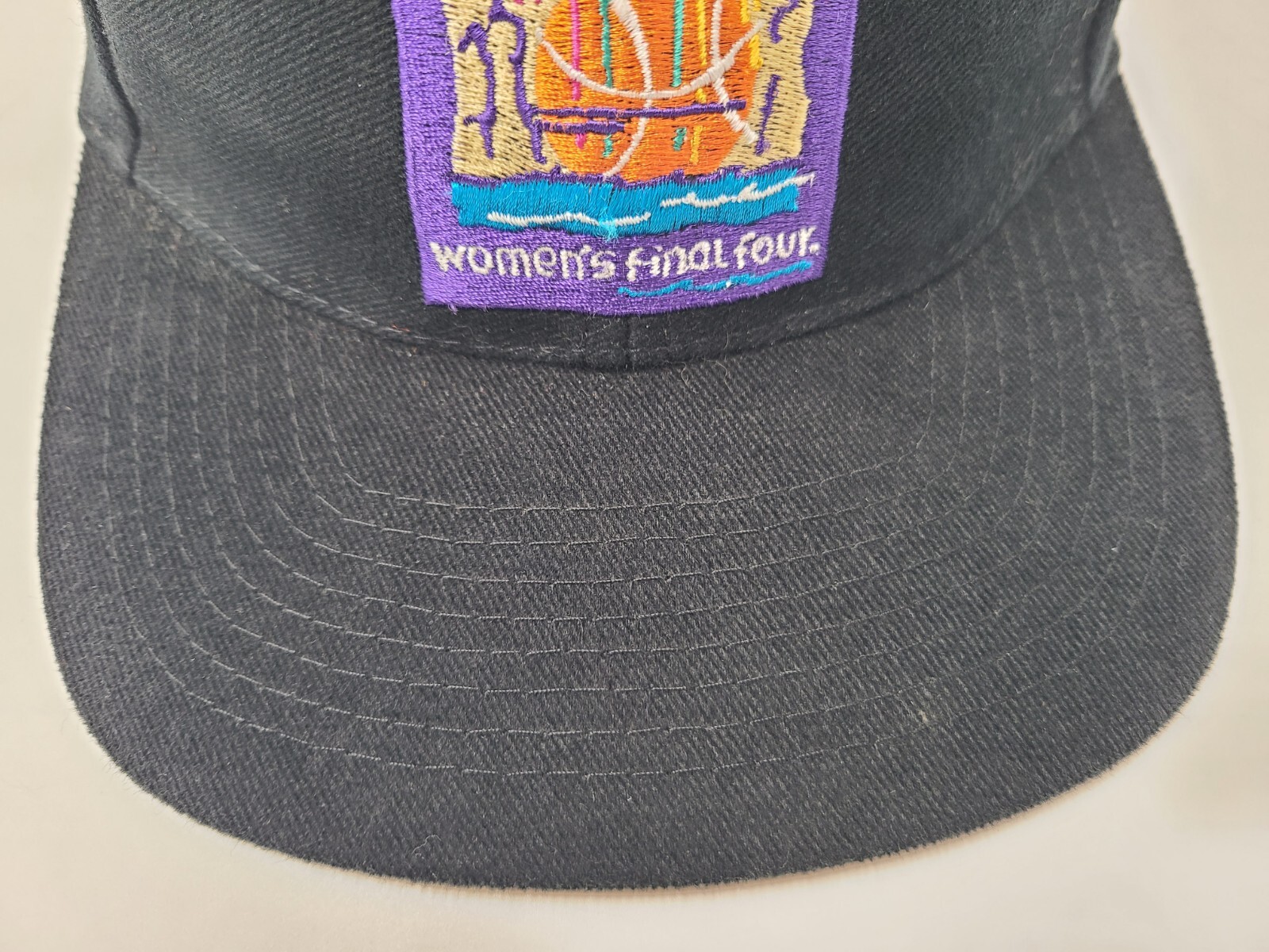 The tag says one size fits all, but it seems best suited for S-M sized heads. Vintage 1997 NCAA Womens Final Four Stretch Fitted (Seems S-M) Hat Cap 90s Black. EACH ADDITIONAL HAT PURCHASED IS ONLY $1 ADDED SHIPPING!