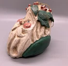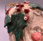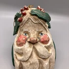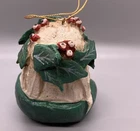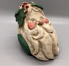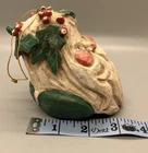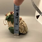 PLEASE NOTE: One leaf is damaged, with a tip broken off. Please see last two photos to best assess. Otherwise it is a rustic style with primitive paint, possible “as made” imperfections and I found no other damage. Measures approx 3” across, 3.75” tall and deep (from front to back.) Lightweight at approximately 1.8 ounces. It feels like it is made of paper mache, but it is possibly a composite or lightweight resin material.