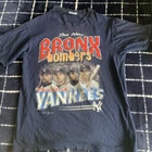 This is a vintage 1998 Bronx Bombers New York Yankees T-Shirt. There are holes and minor rips as can be seen in the pictures. The item comes as described and seen in pictures. I would personally rate this item’s condition as (fair). If there are any questions please ask me.