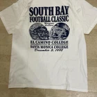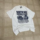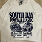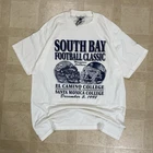 This vintage T-shirt from the 1998 South Bay Football Classic is a must-have for any football fan. Featuring the helmet pattern and classic fit, this shirt is perfect for any unisex adult looking for a stylish and comfortable addition to their wardrobe. The short sleeves and breathable features make it perfect for all seasons, and the white color complements any outfit. Made in the United States, this T-shirt is a true vintage piece from the Santa Monica product line. It's a great way to show your love and support for your favorite team, and the XL size ensures you'll have enough room to move around. Don't miss out on this unique and one-of-a-kind item!