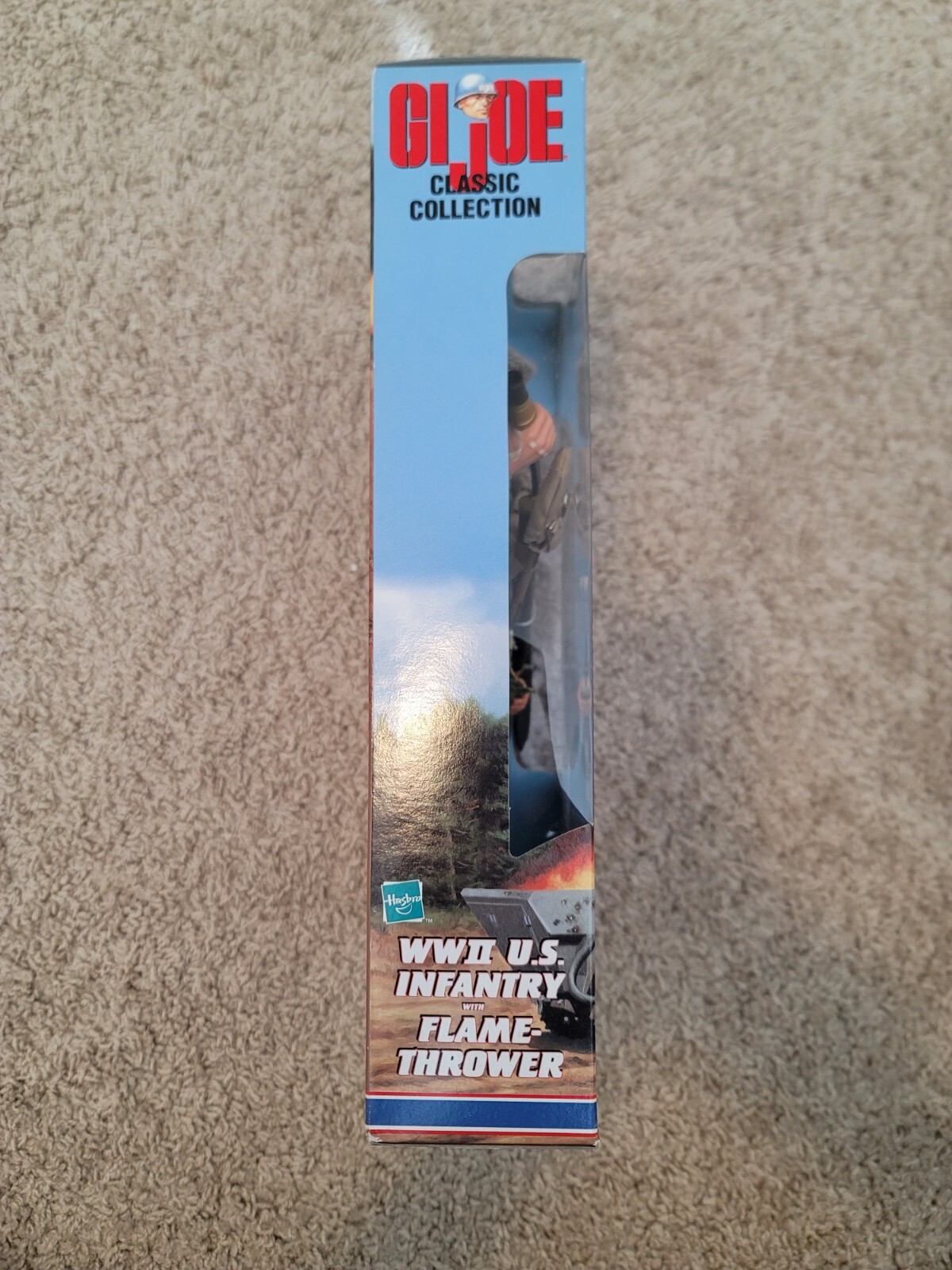 Brown hair, original seal, unopened new in box. Item is in great condition with minor box wear, as shown in pictures. This item was stored in a temperature controled environment in storage since purched in 1999. The knife and shovel has fallen to the bottom of the box since the plastic tie-down has deteriorated over 25 years ( very, very common). The product is a G.I. Joe WW2 U.S. Infantry action figure from the Classic Collection 1999. This action figure features a flamethrower accessory, making it a unique addition to any G.I. Joe collection. The figure is part of the G.I. Joe franchise and is in the 1:6 scale, representing a World War II-era character from the brand. Comes in its original packaging, sealed, and never opened.