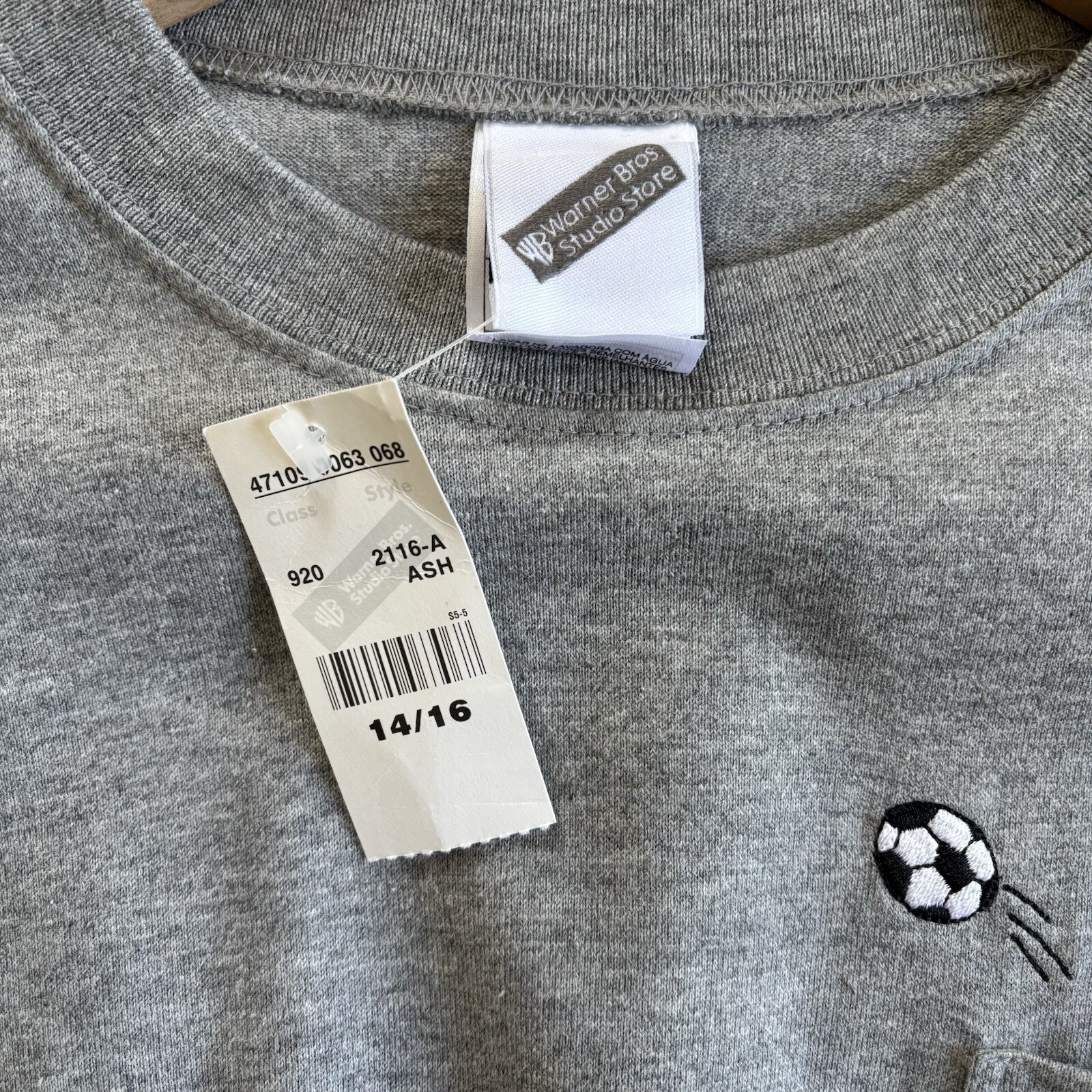 Warner Bros Studio Store brand Size XLarge 14/16 Vintage 1999 Cartoon Network gray 100% cotton long sleeve shirt with embroidered Scooby Doo playing soccer on the chest pocket. New with tags Approx measurements Chest pit to pit 20” Length shoulder to hem 26” Sleeve pit to cuff 18.5” Smoke free home