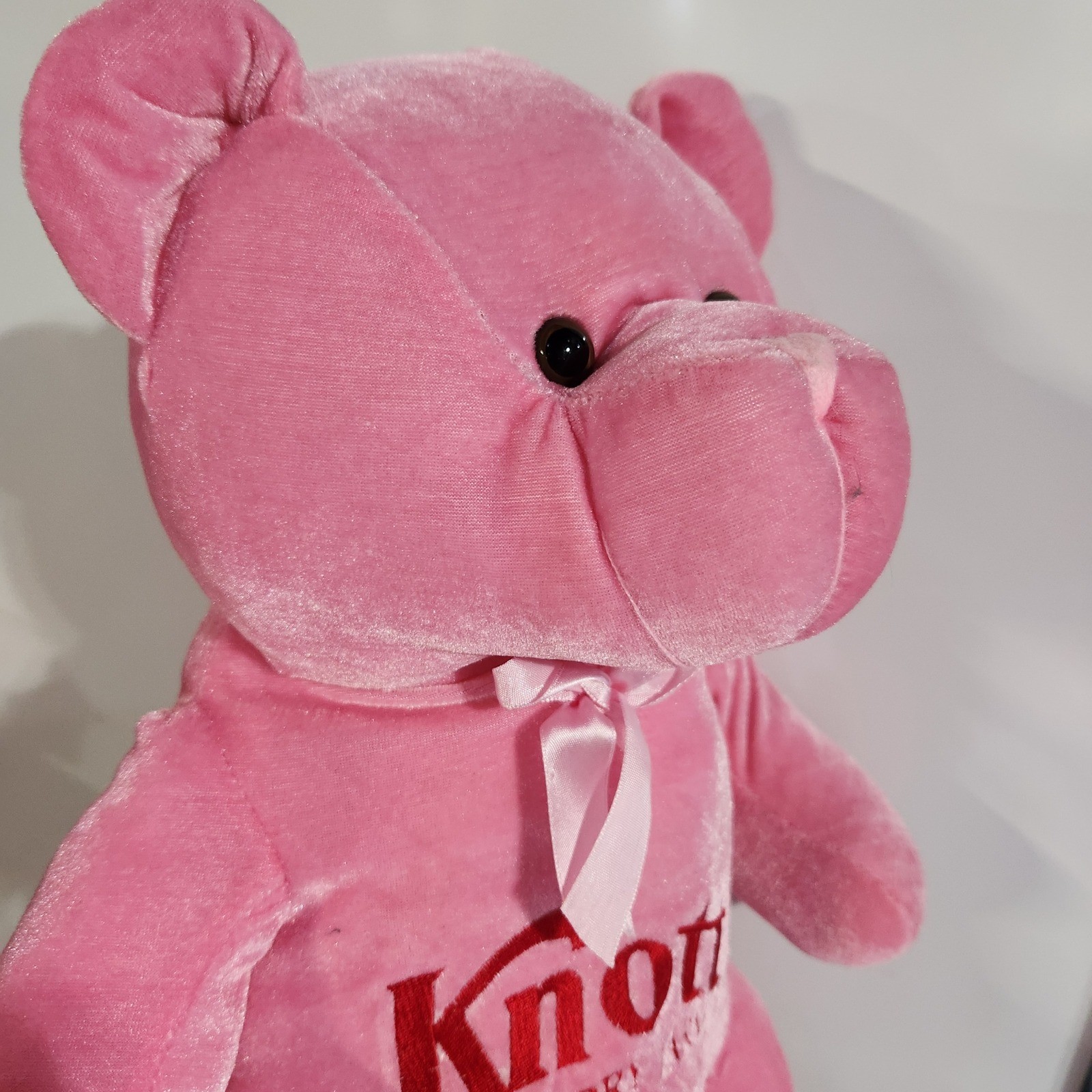 Pink Knotts berry farm teddy bear 19" plush Bubble gum pink Condition: Well loved vintage. This was my personal bear from the late 90s early 2000s. overall in good condition but a few minor flaws. A few seams have pulled at rhe leg (last two photos) A tiny snag on his head A small spot on his back Please view photos carefully as I have shown all flaws. Smoke free home Fast fair and well packaged shipping