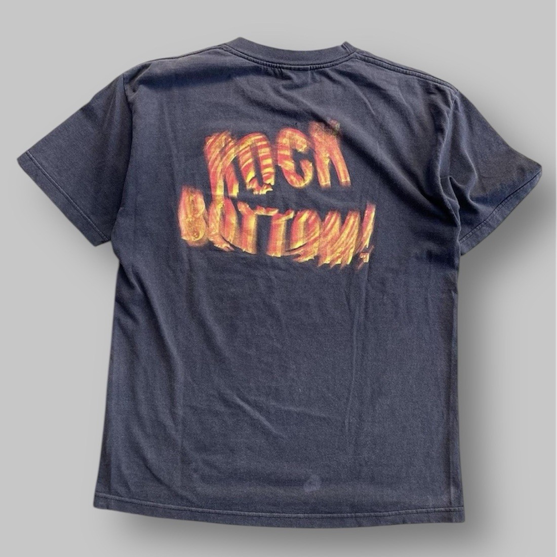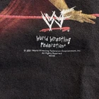 Rare vintage 2001 WWF Rock Bottom t-shirt featuring The Rock and Chris Benoit from the Attitude Era. Soft, perfectly worn-in fade that gives it that true vintage look. • Size: Large • Measurements: 21” pit to pit x 28” length • Condition: Naturally faded with a noticeable mark/stain that goes through to the back (see photos - not too noticeable when wearing). No holes or major damage. Hard-to-find piece for any vintage wrestling or WWF collector. Check all photos for full condition and details before purchasing.